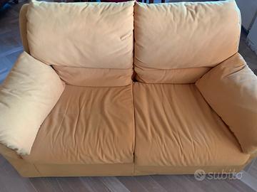 Scamosciato, interamente sfoderabile, di un bel giallo ocra (non si vede in foto). 140lunghezza, profondità tote 85 cm e altezza da terra 85cm