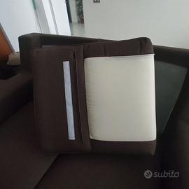 Usato per breve tempo e sempre con un copridivano. Completamente sfoderabile grazie a cerniere e velcro. Spalliera alta comoda per poggiare la testa. Colore marrone scuro.
