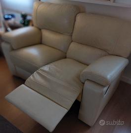 Divano due posti pelle, buone condizioni, color avorio. Dondi Salotti