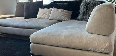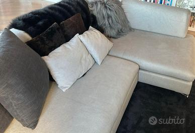 Divano due posti comodi piu chaise longue tessuto colore grigio . Usato da sette anni firmato Molteni & C. Misure cm. 210 X 150