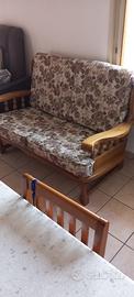 Vendesi divano in legno rovere massello con doppia seduta. Le misure sono 135 di lunghezza, seduta 80 e 95 di altezza.
