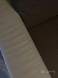 Divano due posti in ecopelle e stoffa con meccannismo di letto estraibile, se si desidera è disponibile anche la penisola contenitore.