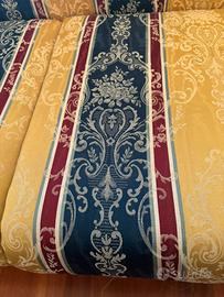 Divano due posti broccato giallo paglierino righe rosse e verdi misura profondità 82 larghezza 150 altezza