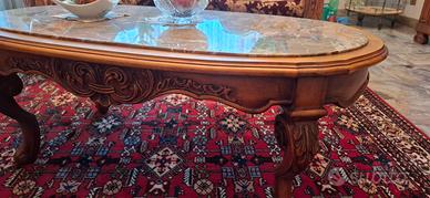 Tavolino ovale con piano in marmo in stile. cm 114x60x H45 euro 270, se venduto singolarmente.