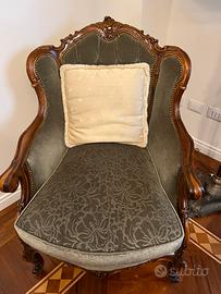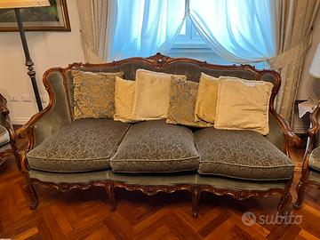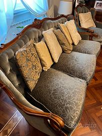 Divano e 2 poltrone noce italiana