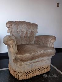 Divano e 2 poltrone vintage tessuto damascato in o