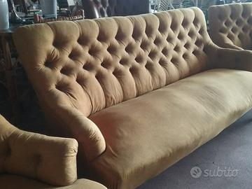 Bellissimo salottino capitonnè giallo ocra composto da un divano tre posti e due poltroncine.
