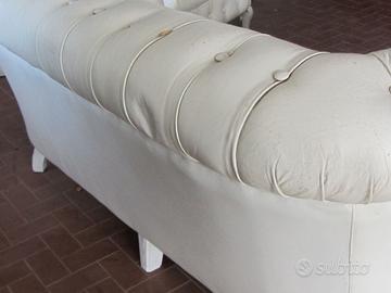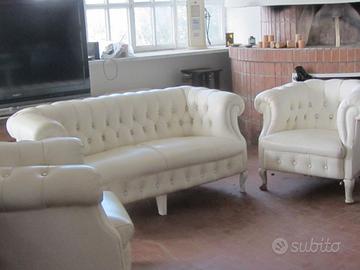 Divano due posti con due poltrone Frau modello Chesterfield in pelle bianca. Sono appartenuti alla mia famiglia fin dal 1930. Sono adatti per salotti eleganti , per arredare alberghi e per scenografie di teatro.