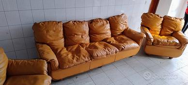 Salotto completo divano e due poltrone marca Lev & Lev in cuoio colore cognac vera pelle ben tenuto in ottime condizioni da ripulire. Solo ritiro a vostro carico presso il mio domicilio il salotto si trova a Strambino(to)