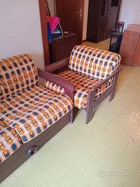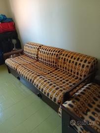 Divano e 2 Poltrone Originali Vintage Anni 60, Vendo per svuotamento casa, il divano é un 3 posti molto spazioso, i cuscini si possono rimuovere e sotto c'é un materasso singolo rialzato, stessa cosa per il cassetto con le maniglie rotonde nella parte inferiore, aprendosi c'é un secondo letto singolo, le 2 poltrone sono molto ampie e profonde. Fodera originale dell'epoca, ottime condizioni. Il prezzo per le 2 poltrone + il divano é di 100€