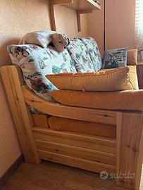 Vendo uno o due divani in ottime condizioni, entrambi con struttura in rovere molto solida, fatti artigianalmente, perfetti per montagna/mare e per soggiorno. Disponibili insieme o separatamente. divano letto € 300, divano più piccolo € 200. Un divano è con letto, rete e materasso inclusi, apertura semplice e funzionale Dimensioni: lunghezza cm 190 larghezza cm 87 (3 cuscini dimensioni 60 cad) Dimensioni: lunghezza cm 170 larghezza cm 87 (2 cuscini dimensioni cm 80 cad) entrambi sfoderabili e con ricambio fodere cuscini beige tinta unita Condizioni ottime, vendo per ristrutturazione casa. Trasporto a carico acquirente