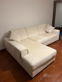 -divano angolare con chaise longue, in tessuto color ecrù avente misure 2,50x1,80x1,00 .
