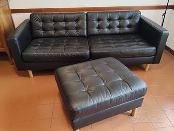 Vendo Divano Ikea 3 posti mod. Landskrona - Grann/Bomstad nero/legno + poggiapiedi Landskrona - Grann/Bomstad nero/legno, entrambi in pelle.