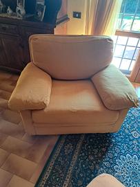 divano e poltrona in tessuto antimacchia completamente sfoderabile con cuscini in piume d'oca