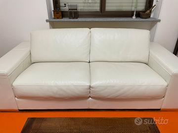 Vendo, marca divani e divani by natuzzi, in vera pelle bianco, divano mt. 2.15x95 (ovviamente è un divano e non un letto per dormirci sempre ma di emergenza il materasso è alto 10 cm.) e poltrona mt. 100x93 Sono tenuti perfettamente, usati praticamente mai, non hanno un graffio. Il prezzo di divano e poltrona non è trattabile ed è quello scritto. Il prezzo d'acquisto è stato di €3000.
