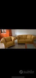 Divano e poltrona vintage,in pelle,dalle condizioni ottimali.