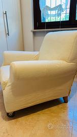 Poltrona rifoderata completamente in bianco con puff (non rifoderato)