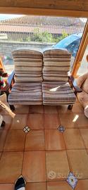 Vendo un divano a due posti in legno con poltrona abbinata e cuscini sfoderabili e lavabili. Le condizioni sono buone, qualche segno sui braccioli, i cuscini sono integri ed in buono statoi. Solo ritiro in zona non spedisco.