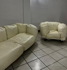 Divano e Poltrona Corbeille di Edra disegnato da Francesco Binfarè in pelle bianco/avorio - 2010 - Divano 3 posti Altezza 74cm Larghezza 250 cm Profondità 108 cm - € 2.400