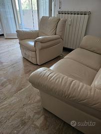 Divano 2 posti e poltrona singola in vera pelle marca Natuzzi, con funzione "alza gambe" e "abbassa schienale" elettricamente, però da rivedere a causa di falsi contatti delle pulsantiere, quindi vengono venduti come "NON FUNZIONANTI". Strutture in buono stato, rivestimento della pelle senza tagli e/o forature, ma normali segni del tempo facilmente ripristinabili attraverso una approfondita pulizia con i prodotti dedicati che si trovano in commercio . Dimensioni divano: largh. cm. 160 - prof. cm. 85 - h. cm. 90. Dimensioni poltrona: largh. cm. 100 - prof. cm. 85 - h. cm. 90. Il brand Natuzzi continua a produrre ed attraverso il suo sito web, si può verificare facilmente il valore qualitativo ed economico di questi oggetti. Ritiro e trasporto a carico dell'acquirente.