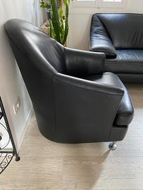 Vendo (anche separati), per cambio arredamento, divano tre posti e poltrona by Natuzzi di Divani&Divani, neri, in vera pelle. Misure: L. 2,20 x P. 0,95 Per entrambi: € 800,00 Solo divano: €. 600,00 Solo poltrona: €. 300,00 Non spedisco. Pagamento in contanti. Contatti solo tramite Subito.it