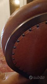 Divano e poltrona in pelle stile classico, acquistate a Cerea, con rivestimento delle sedute da sistemare. Regalo