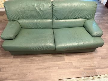 Divano e poltrona in pelle verdi