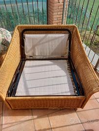 bellissimo divano e poltrona letto in rattan (NO PLASTICA) con cuscini sfoderabili,vendo per mancanza di spazio. prezzo trattabile