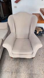 Divano e poltrona in pandan Liberty originali finw anni 50 perfettamente conservati, tutto originale con fodere copridivano fatte su misura nuove con cerniera.