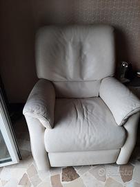 completo divano 3 posti con puof di Divani by Natuzzi mod. siesta 2281 in pelle aurora colore bianco panna. poltrona con meccanismo elettrico + massaggio modello tiziano by Natuzzi pelle aurora bianco panna.