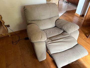 Vendo divano due posti e poltrona con movimento relax in ottime condizioni. Oltre al movimento per le gambe il