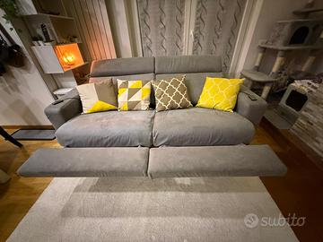 Per cambio spazi in casa vendo divano 4 posti maxi relax elettrico (circa 102x210x103 cm) con schienali reclinabili e poltrona coordinata (circa 102x91x103 cm) con meccanismo schienale, entrambi in tessuto. I motori del divano sono perfettamente funzionanti, la seduta è molto comoda e la struttura solida; sia divano che poltrona sono in ottimo stato generale. Segnalo solamente un segno di usura sul bracciolo sinistro del divano, comunque pienamente utilizzabile.