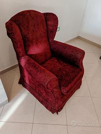 Divano in velluto lavorato rosso con poltona. usato ma ben conservato