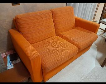 Vendo una poltrona e un divano in tessuto arancio.