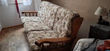 Vendo set composto da divano 3 posti e poltrona abbinata, entrambi con struttura in legno massello e cuscini originali fantasia floreale.