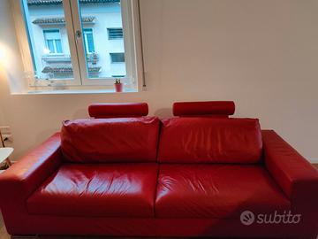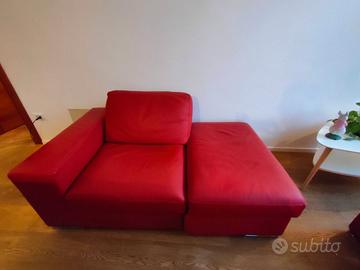 Divano 3 posti colore rosso. Misure divano: H 75cm Largo 2m e 31cm Profondità 98cm Poltrana composta da due pezzi, seduta e poggia piedi Usabile come pezzo unico come in foto, oppure due pezzi separati. Lung 155cm Larg95cm H 65cm Tenuti molto bene e usati poco Ecopelle Presi insieme 130 euro Solo divano 100euro Solo poltrona 50 euro Ritiro in loco. Santa Maria del Rovere