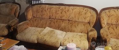 Vendo un divano evdue poltrone legno di noce. Da lavare