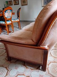 Divano 3 posti e 2 poltrone in pelle e legno. Tenuti bene ma presentano qualche macchia. Valuto offerte
