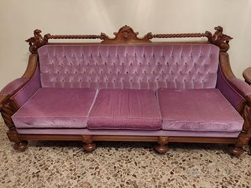 Vendo divano in stile eclettico barocco anni 70. Tenuto maniacalmente. Ottimo per amanti del genere. Intarsi in legno e struttura massiccia.