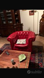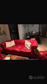 Vendo per inutilizzo un divano tre posti e due poltrone da un posto, modello Chesterfield in vera pelle rossa.