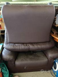 vendo divano e 2 poltrone ottime condizioni,in pelle color testa di moro.nessun segno di usura.solo da spolverare.... possibilità di trasporto