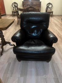 Salotto Frau con due poltrone un divano a 3 posti e un pouf. Pelle marrone testa di moro.