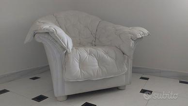 Composizione 2 poltrone e 1 divano da tre posti in pelle nuvolata bianca, struttura cuscini sfoderabile. La composizione è così formata: