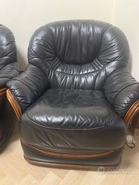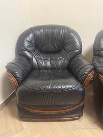 Vendo divano con poltrone (2) in pelle di alta qualità in buono stato. Il divano ha anche la possibilità di diventare un letto e il materasso all’interno è praticamente nuovo, sostiuito di recente.