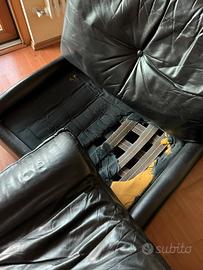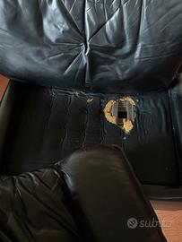 Set divano e due grandi poltrone in vera pelle nera.
