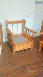 N. 2 POLTRONE E 1 DIVANO LETTO SINGOLO IN LEGNO DI PINO STILE RUSTICO STATO OTTIMO SENZA CUSCINI