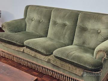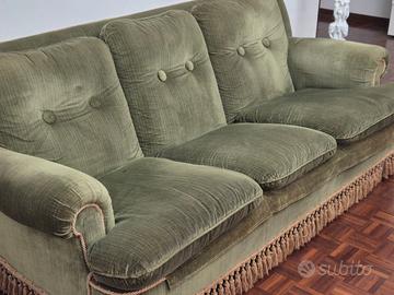 Splendida coppia di poltrone e divano in velluto verde acquistate dal proprietario di aristocratica antica villa sulla collina di Torino. Vendo per cambio arredo