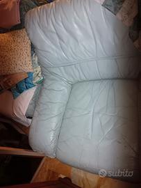 Divano buono stato in vera pelle color celeste chiaro i cuscini sono tutti rimovibili in regalo 7 piano ma ampie scale.