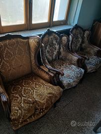 vendo divano e poltrone di legno imbottite e intersiate ben tenute per cambio casa .