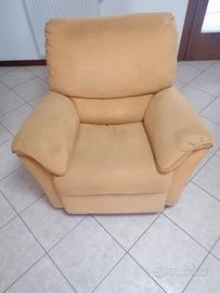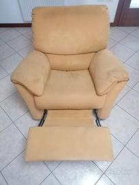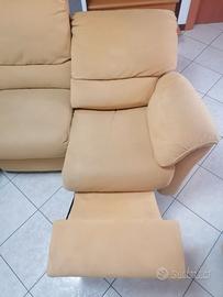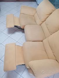 Vendo divano 3 posti con sedute esterne reclinabili con poggia piede. Misure L=215 H=90 P=95. Vendo 2 poltrone reclinabili e con poggia piede. Misure L=95 H=90 P=95.